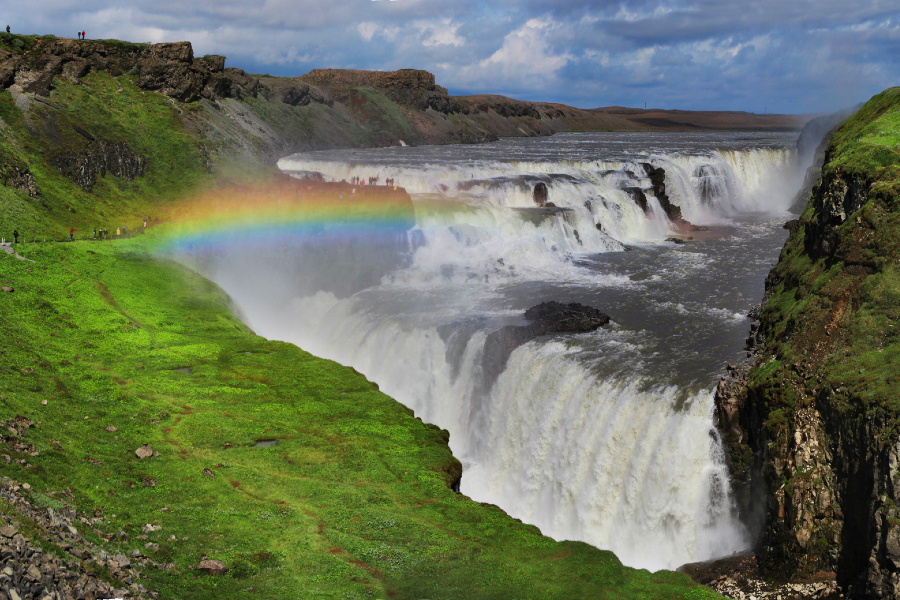 Videre til det imponerende Gullfoss vandfald. I dens vandtåge ses ofte en regnbue. Her vil være god tid til at nyde synet og området.