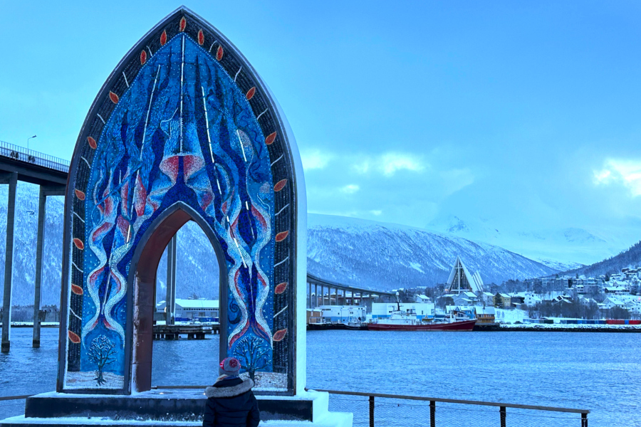 Vi flyver fra København direkte til Tromsø, hvor vi lander kl. 11.15. Fremme ved vores hotel afleverer vi bagagen og starter med at udforske byen.